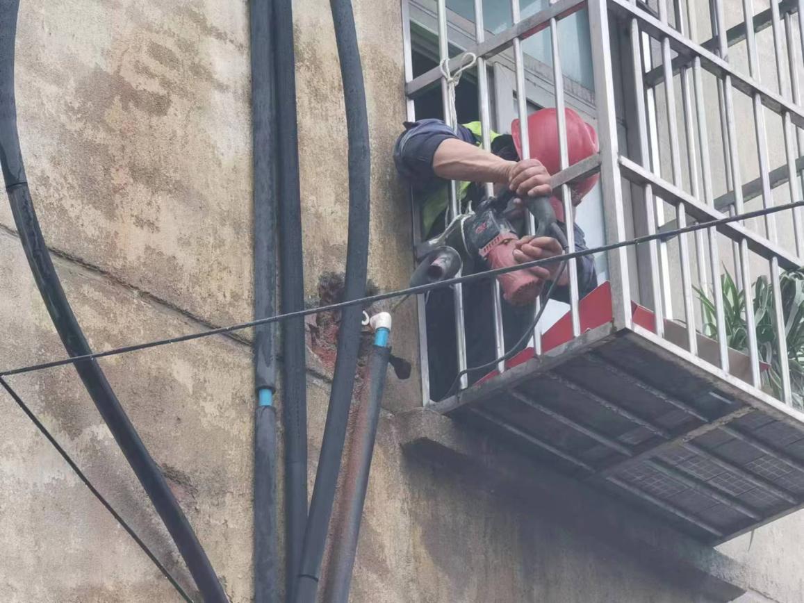 “這里水管漏了,外面的墻都打濕了,麻煩你們快來看看啊!”3月20日上午8點30分,建設工程公司接到市民的求助電話,稱他家墻外有根水管在向外冒水。運維中心牽頭人張遠燈立即安排維修人員第一時間趕往現場。經過詢問和現場查看后,發(fā)現事故原因是2樓外墻進屋處彎頭漏水,但該項維修內容本不屬于公司的維修范疇。維修人員看到無助的老人,便毫不猶豫地爬上2樓陽臺,在狹窄的空間內艱難地為老人更換破損管件。雖然是用戶房屋內部管道漏水,水務人本著想用戶所想,急用戶所急的服務精神,不計較、不推諉的幫助用戶及時解決漏水難題。