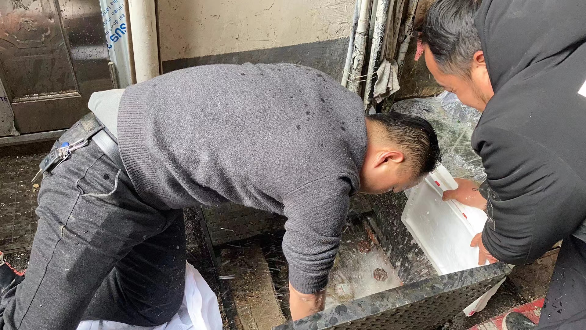 與此同時(shí),客戶服務(wù)中心的搶修人員在小區(qū)幫助用戶解凍通水,為了便于操作,搶修人員不戴手套跪在已經(jīng)上凍的表井池旁伸進(jìn)冰冷水中進(jìn)行維修,雙手凍得通紅,渾身直打顫,絕大多數(shù)人搶修人員的手、腳都凍傷了,但為了用戶們能夠盡快用上水,可他們卻義無反顧,“我們也知道冷,但是沒辦法,戴上手套不好操作,為讓用戶早些有水可用,我們一直都是這么做的”。為了用戶們能夠盡快用上水,他們的工作沒有停息過。