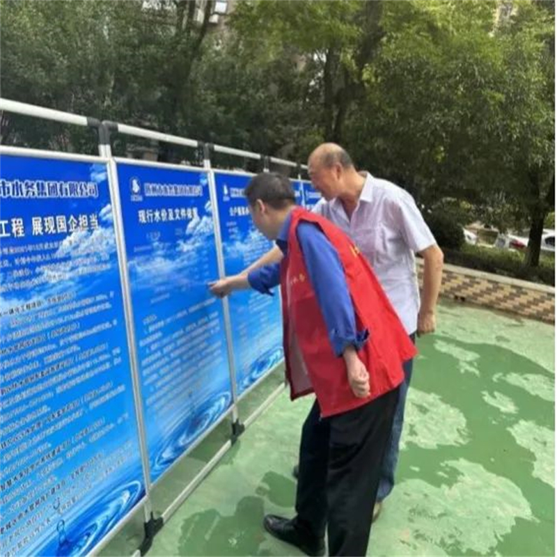 活動(dòng)現(xiàn)場,工作人員們通過設(shè)置咨詢臺(tái)、擺放展板、發(fā)放宣傳冊、填寫調(diào)查問卷等形式,耐心細(xì)致的向社區(qū)居民宣傳供水服務(wù)范圍、服務(wù)承諾,如何報(bào)裝開戶、如何便捷繳納水費(fèi)等信息知識(shí)。以解決群眾用水問題為導(dǎo)向,主動(dòng)征求、收集居民在用水方面的意見和建議。